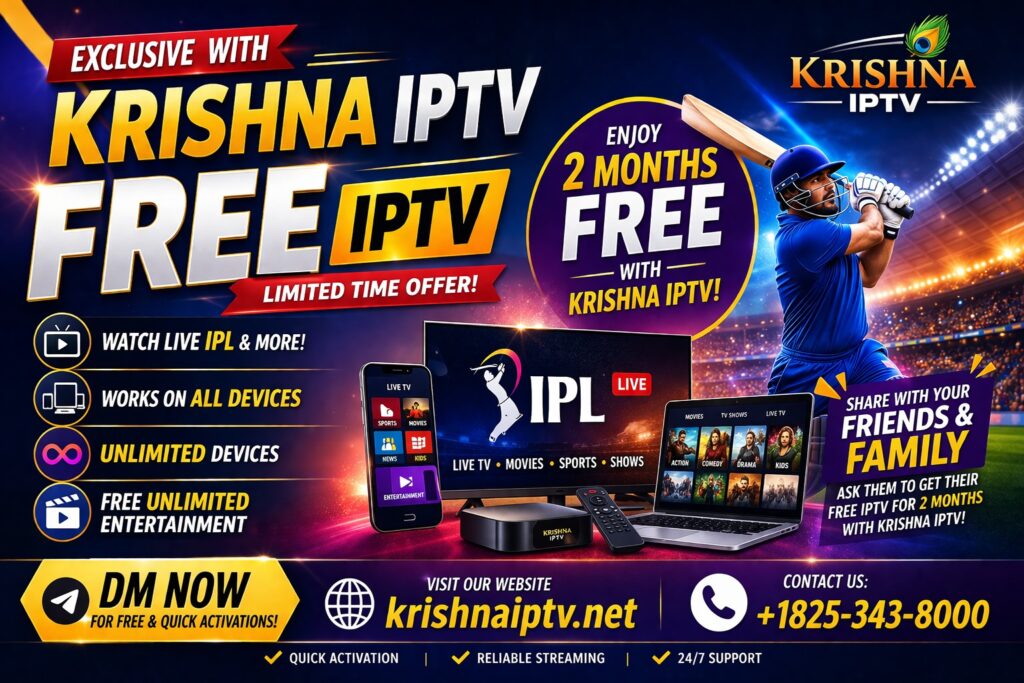 Krishna IPTV brings you an exclusive limited-time opportunity to enjoy 2 months of FREE IPTV access with seamless streaming and high-quality entertainment. Designed for viewers who prefer English and Indian content, this service ensures you never miss your favorite shows, live TV channels, or major events like IPL. It’s the perfect solution for anyone looking for reliable and unlimited entertainment in one place.